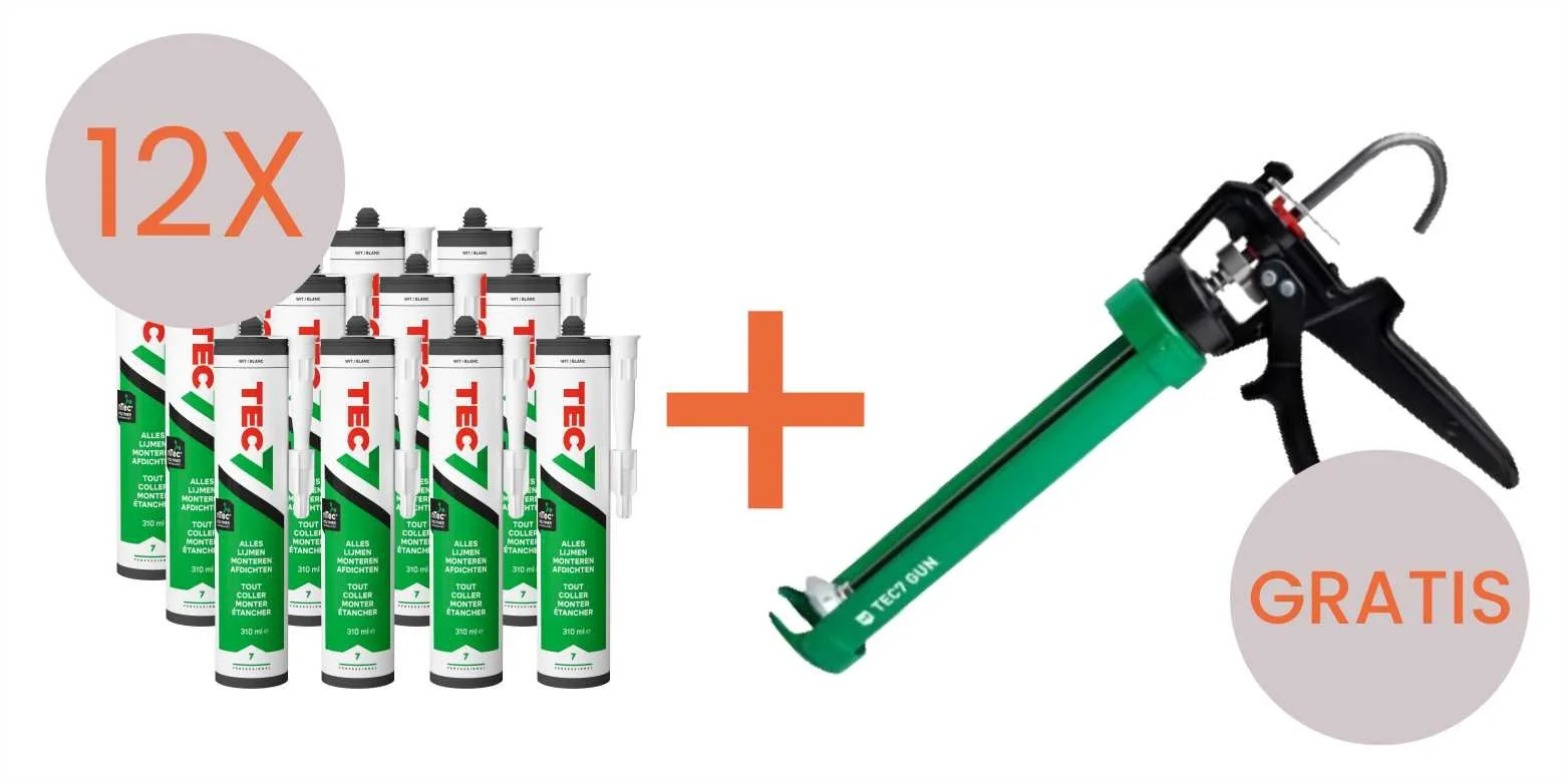 Bij aankoop van 12 tubes TEC7 montage/afdichting,