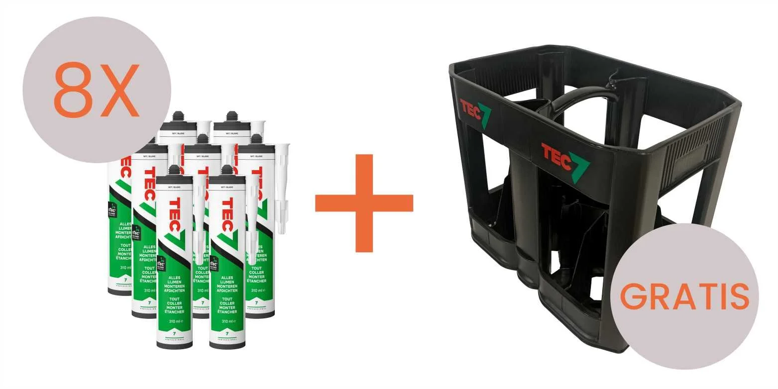 Bij aankoop van 8 tubes TEC7 montage/afdichting,